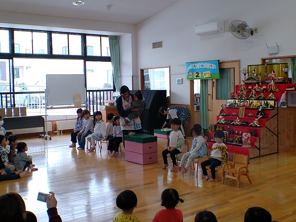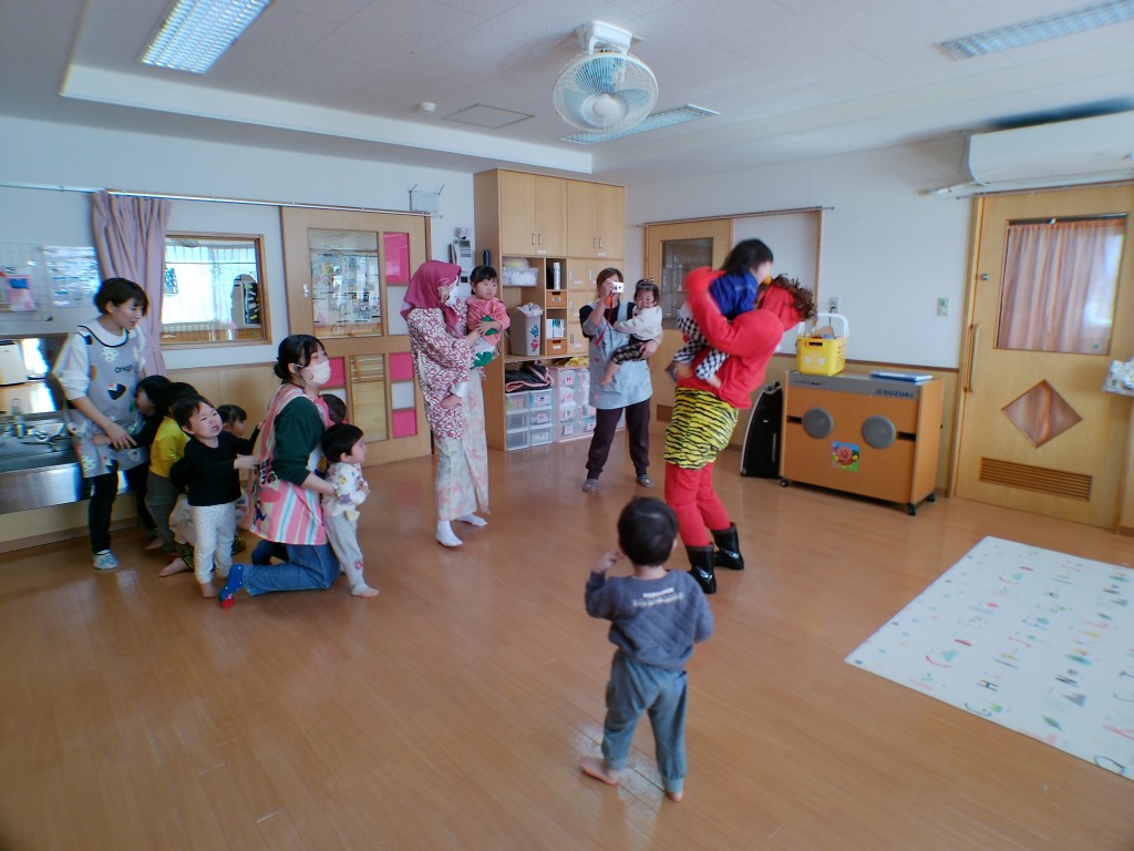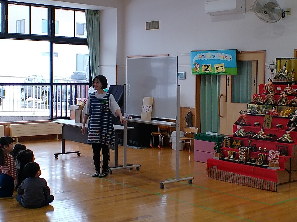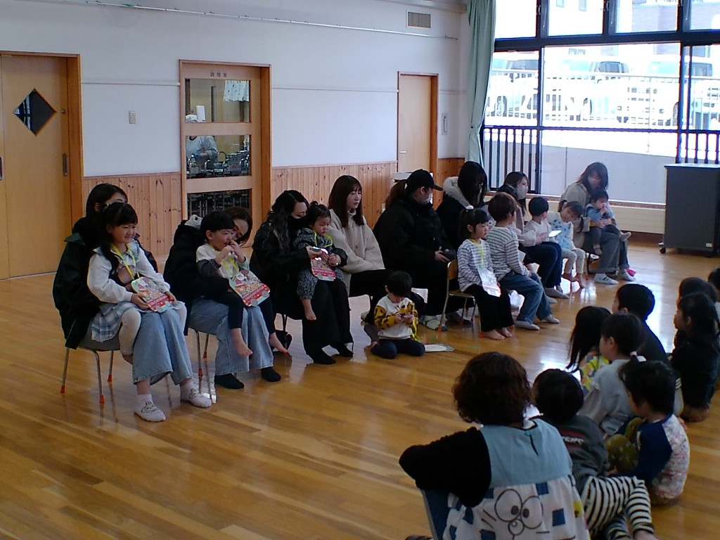 2月19日(木)2月生まれの誕生会を行いました。9名の子どもたちがみんなから「おめでとう」とお祝いされました。その後、先生の「ふしぎなふくろ」という手品のようなお話のような会がありました。トマトやハンバーグなどの材料を袋に入れると「ハンバーガー」が出てくるといったお話です。みんな真剣に何が出てくるのかを考えていました。