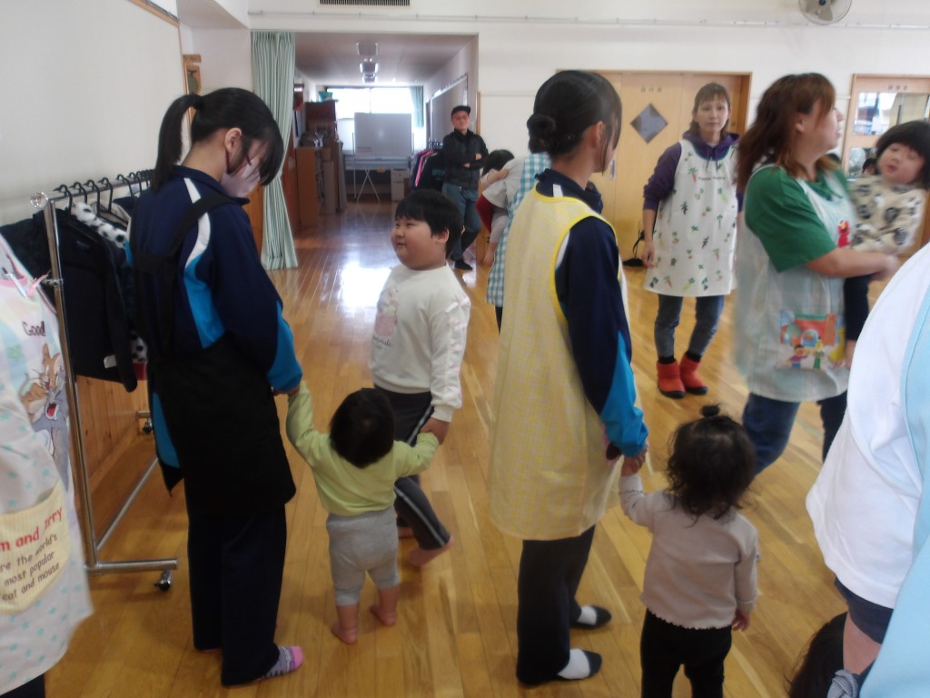 明成中学校と光陵中学校の生徒さんが保育体験学習で来園しました。最初は、緊張していたのか遠慮気味で戸惑っていた様子でしたが、慣れるのに時間はかかりませんでした。園児たちも大きいお兄さん、お姉さんと遊ぶことがとてもうれしかったようです。また来てほしいなと思っていたと思います。
