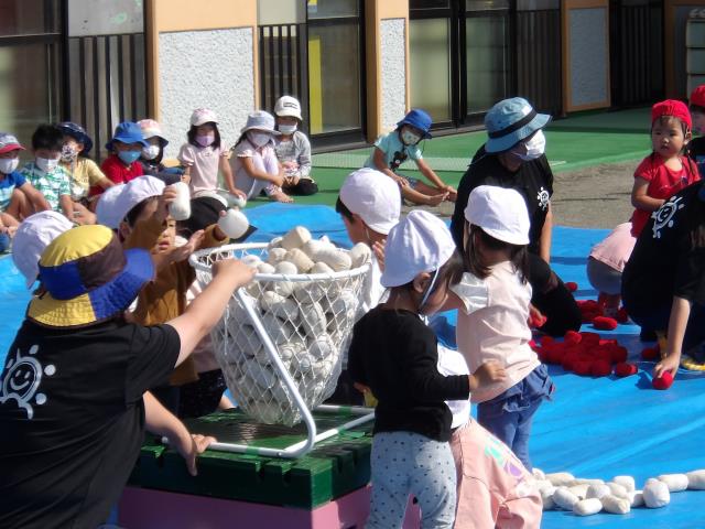 11月24日、今月誕生日を迎えるお友だちをお祝いする誕生会が行われました。主役たちが登場し、虹の下をくぐると、会場から名前を呼ぶ光景が見られ、温かい気持ちになりました。会に先立って行われたホワイトボードシアター「オオカミと七匹のこやぎ」は、興味深いお話でした。9人の皆さん、また一つ大きくなりましたね。お誕生日、おめでとうございました。