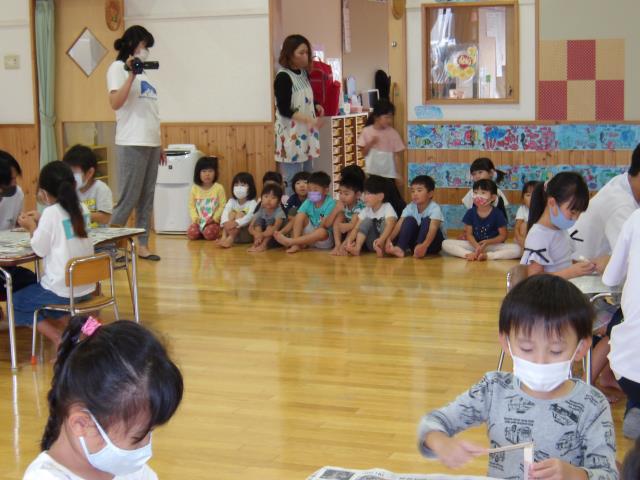12月に誕生日を迎えるおともだちは7名です。ホワイトボードシアター「とんとんとんどなたです」をみんなで楽しんだあと、12月のお誕生会がはじまりました。インタビューコーナーでの「好きな食べ物は?」「好きな色は?」「保育園での好きなお遊びは?」などの質問にしっかりと答えていました。確かな成長を感じました。