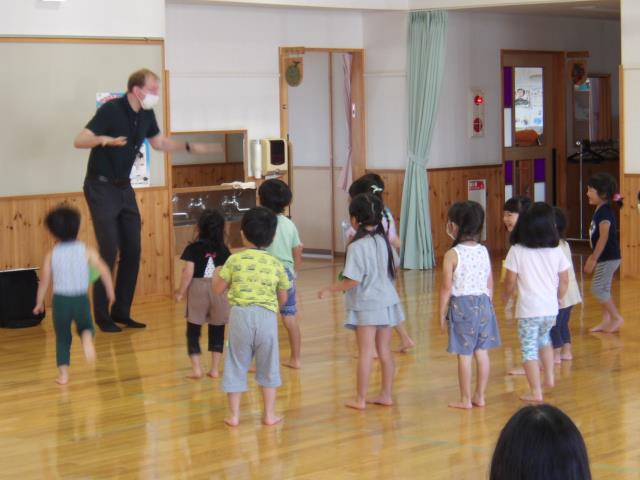 2か月ぶりです。新型コロナウイルスの影響で先月中止となりました『なかよし保育 英語』が、本日行われました。岩見沢市国際交流員(CIR)メーガン先生の明るく元気なご指導もと、子どもたちは歌やジェスチャーをまじえ、ミッシング(記憶力)ゲームやさいころゲームを楽しみながら、「天気の英単語」を学びました。子どもの「聞く力」は大したもんです。
