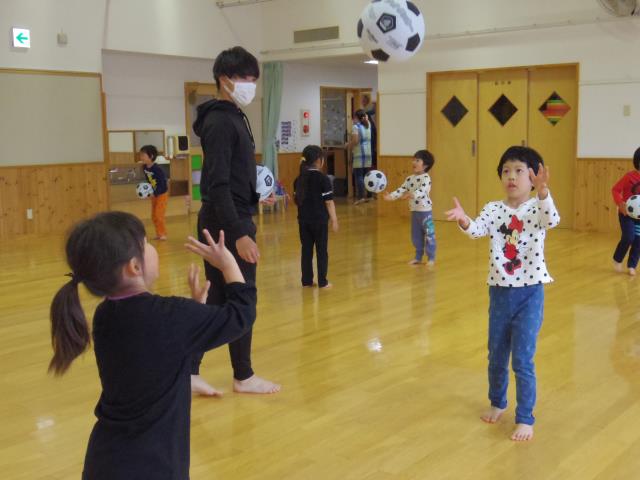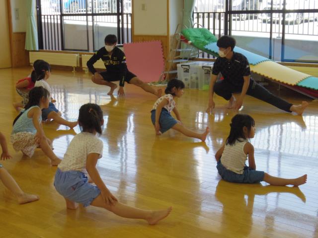 今月の体操教室は、前回に続き、リレーの練習でした。年長さんは、はじめて、バトンの使い方を教わりました。走るフォームが一段とかっこよくなりましたと、ほめていただきました。