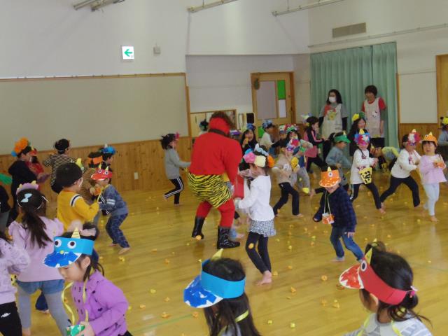 5月1日、一足早く子どもの日のお祝いを行いました。子どもの日にちなんだクイズで大盛り上がり。クラスから作品作りの紹介も上手にできました。その後は、鯉のぼりをみんなで作るゲームをしました。給食には、チキンライスの上に鯉のぼりが立ちました。調理室の皆さんの手作りです。子どもたちみんなが健康でありますように。