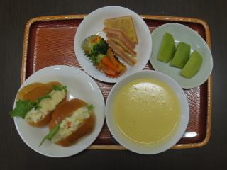 7月は、8名の皆さんが誕生日です。自己紹介、カードのプレゼントのあと、誕生日の歌でお祝いしました。後半は、パネルシアター「なつもよう」「まる、さんかく、しかくクイズ」で大盛り上がりでした。給食は、ちらしずし、から揚げ、お吸い物、スイカをいただきました。