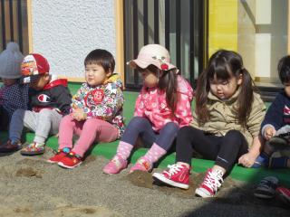 小さなクラスの皆さんもテラスでお弁当を楽しみました。心地よい風もあって、遠足気分を味わいました。