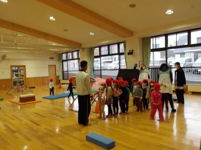 先週の「えいごとなかよし」に続いて、本年度第1回目の「たいいくとなかよし」が、今日ありました。「たいいくと…」は、3歳以上の園児が対象です。今年から参加する3歳児(りんご組)たちは、最後まで、しっかりお話しを聞くことができてました、と講師の先生も感心していました。