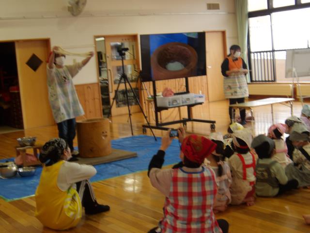 恒例の節分行事がありました。前半のゲームと制作発表には、0歳児クラスも参加してみんなの邪気をはらいました。小さい園児さんが保育室に戻った後半に鬼たちが登場しましたが、《鬼は外!》の声と紙の《豆粒》に園から逃げていきました。