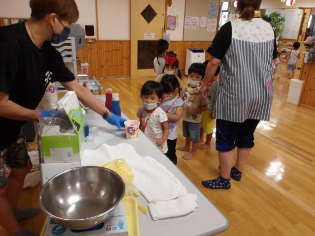 写真は、りんご組とれもん組です。発表会本番で力を発揮できるよう応援しています。