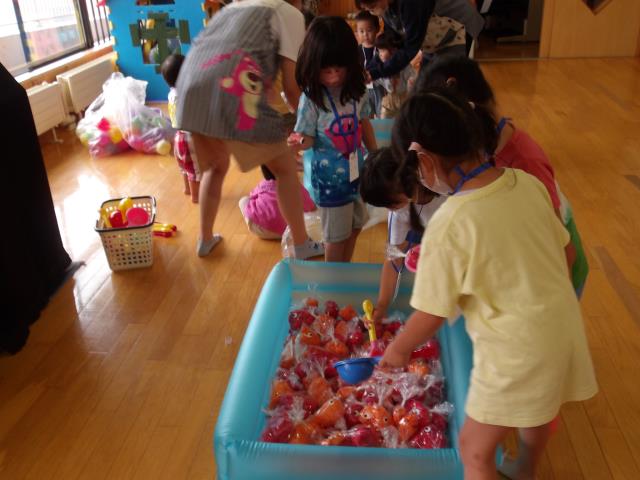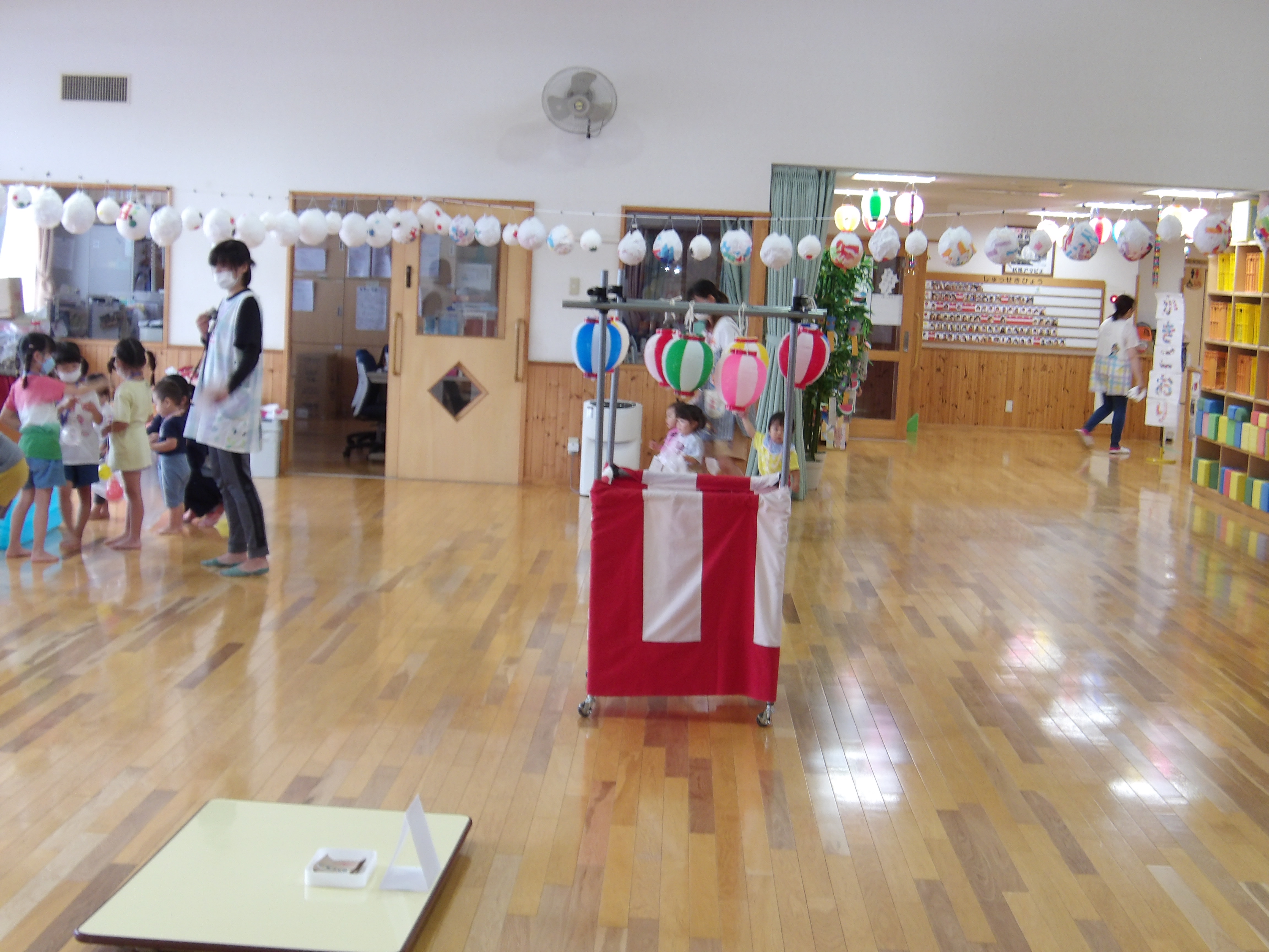 誕生会に先立ち、さくらんぼ・もも・いちご各組のお友だちは「ペープサート~まんまるちゃん~」、りんご・れもん・ぶどう各組のお友だちは「ホワイトボードシアター~くいしんぼおばけ~」で大いに盛り上がりました。みんな反応がとてもよかったです。